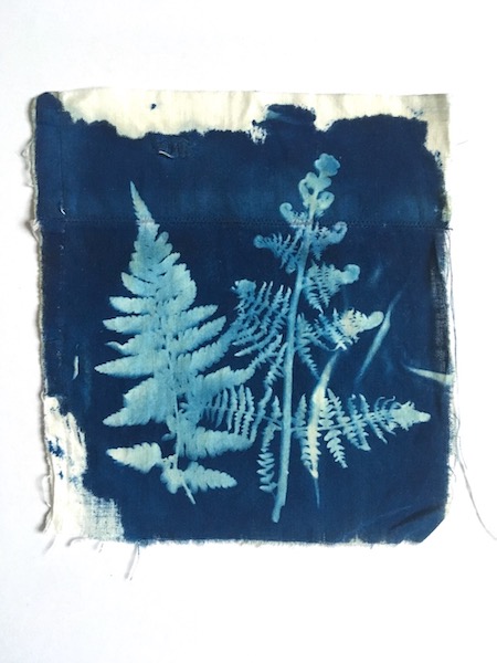 Buttercup leaf, 2018, cyanotype on vintage fabric