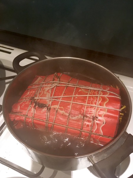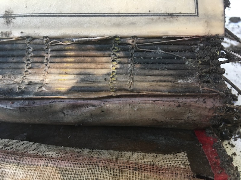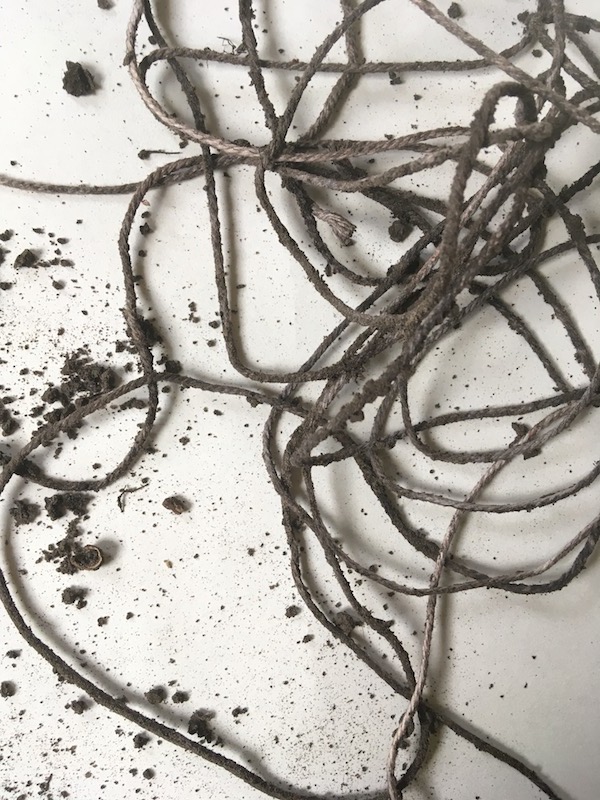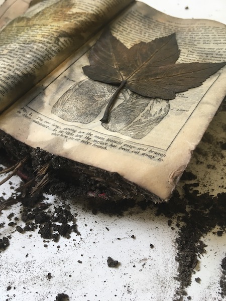 A series of ecoprints of sycamore leaves collected from the ground in my garden, created in the first week of winter and then buried in the ground until the last week of winter when it will be dug up and unbundled.