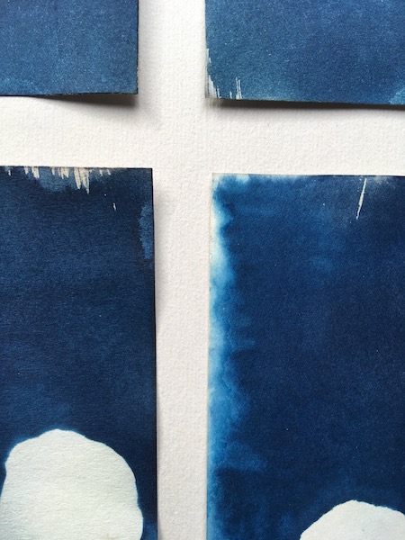 A series of cyanotypes made to record the length of the winter solstice last year, documenting the nasturtium leaves that were still growing due to the mild weather conditions experienced during the season.