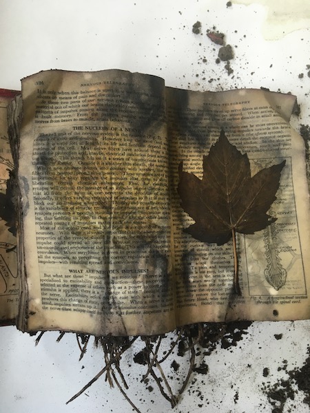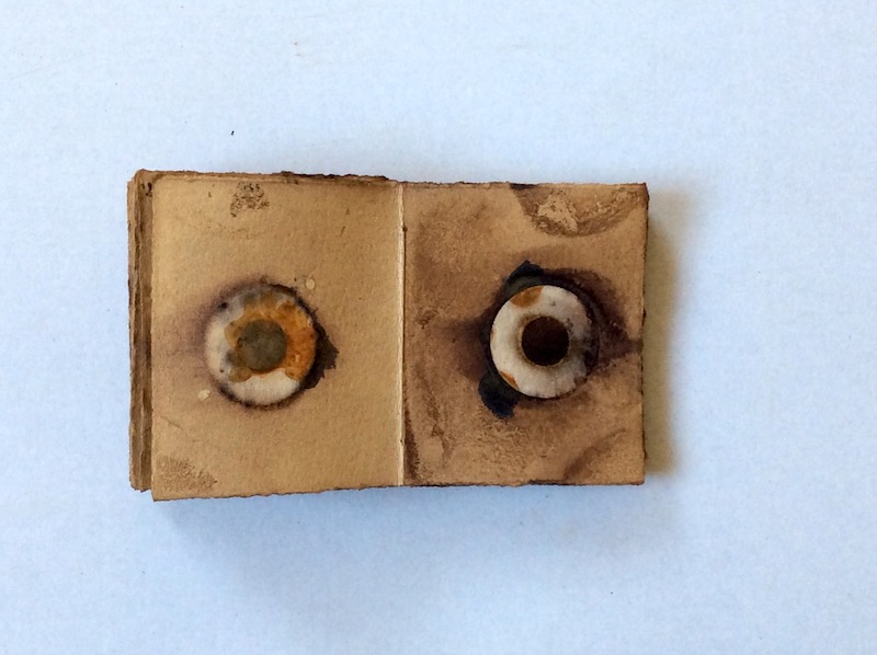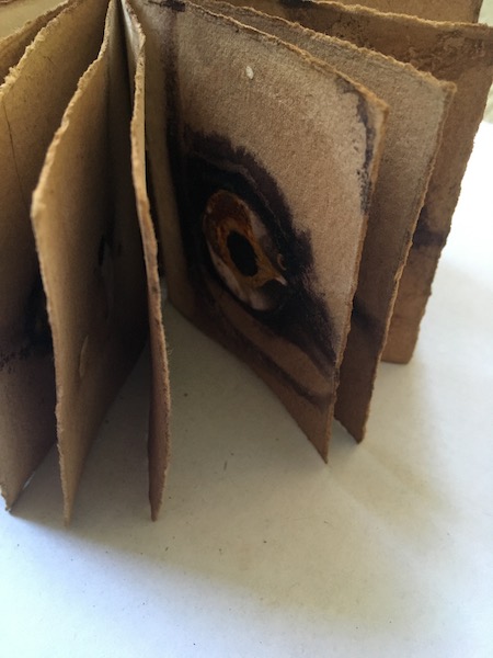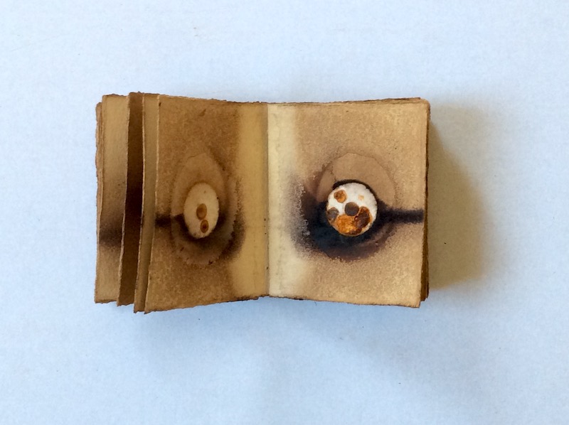A series of rust prints in a hand-bound book of metal hoops collected whilst walking with my son when he was a baby so that he would nap during the daytime.