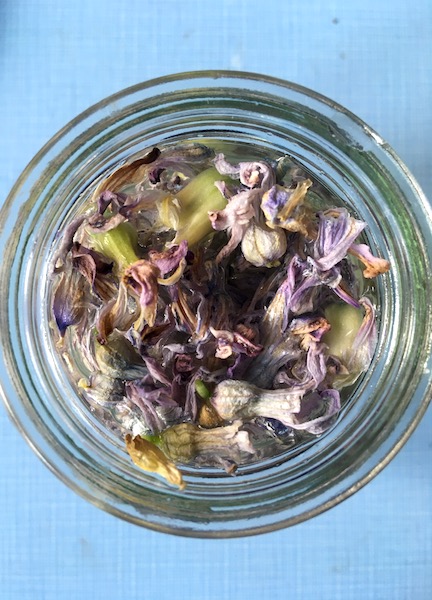 Solar dye created using flowers from a hyacinth bulb forced inside during the winter to cause it to flower early under managed conditions. This is something I do every year, having done this with my mum as a child, and then plant the spent bulbs in the garden to hope that they flower again outside next year.This solar dye was created over a short period of time with the dye being released from the flowers during the first 48 hours.