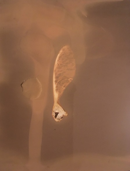 Skeletal remains of sycamore seeds collected from my garden recently as a symbol of the hundreds of sycamore seedlings that will appear here over the next couple of months. My garden is dominated by two very large sycamore trees in neighbouring gardens which I assume have grown accidently and are now thriving ecosystems. During the summer the leaf canopy that they create is so dense that you can be at the bottom of the garden while it is raining and not get wet. The area is so shaded that only spring flowering bulbs (which are out before the canopy forms), nettles and ivy will grow there.